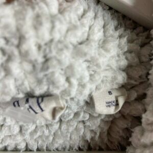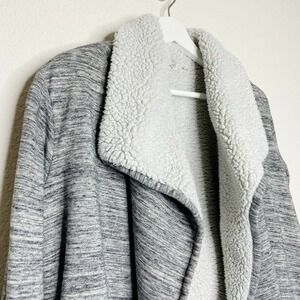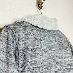 Super cool jacket by GAP. Lined with faux shearling excluding sleeves. Outer is a sweatshirt type fabric. Two pockets. No closure. Slightly oversized. All measurements are approximate and taken flat.Pit to Pit 22"