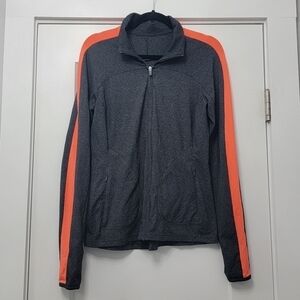 Gap Fit Seamed Athletic Activewear Jacket Dark Grey Coral Orange Trim Medium