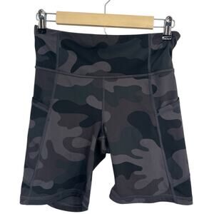 Gap Fit Black Camo Bike Shorts Small High Waisted 7” Inseam
