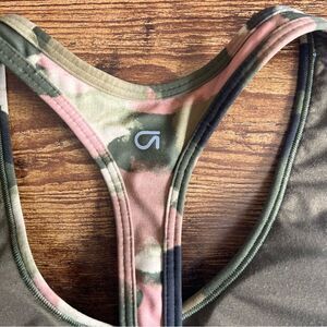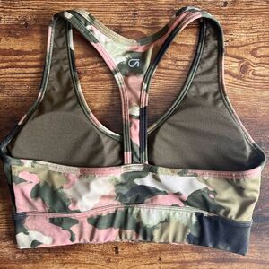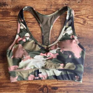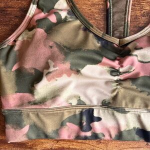Gap Fit Eclipse Green & Pink Camo Longline T-Back Sports Bra