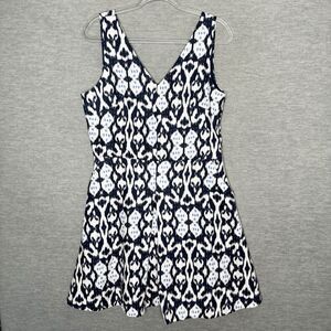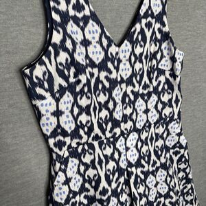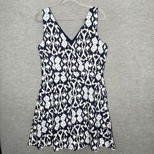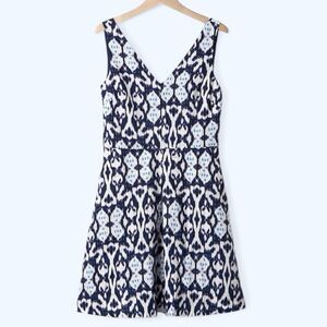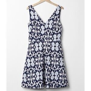 Gap Fit & Flare Dress 100% Linen Size 12 Navy And White Printed Sleeveless Tank