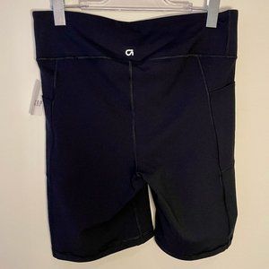 Unworn with tags! 4-way stretch, moisture wicking, compression bike short in black with side pockets and gusset