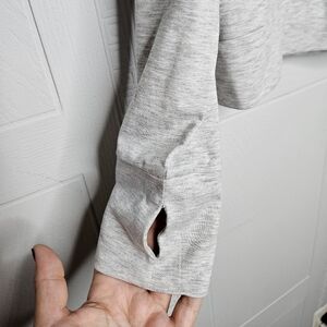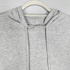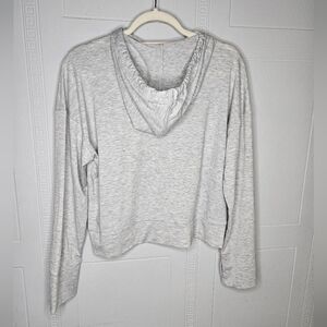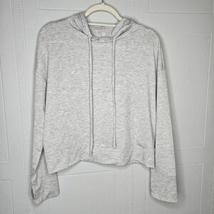 Gap Fit Light Gray Lightweight Cropped Boxy Pullover Hoodie Thumb Holes M EUC