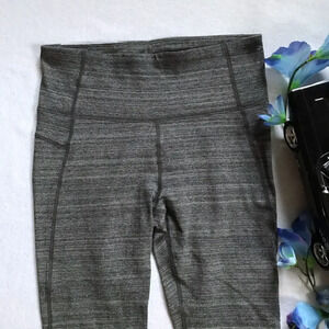 NWOT. Performance Capri for Women Size S. Marled gray, wide waistband, tummy control, hidden internal pocket shown in pic, strappy design at leg openings. Please note there are internal brand/material/care tags, but there is the brand logo back middle top shown in pic. I am approximating is a Size S based on measurements, please see measurements for best sizing. Pictures are part of description.