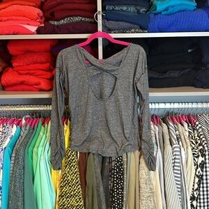 Gap Fit gray athletic long sleeve cross crossed back top size S