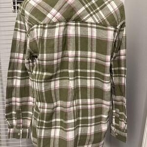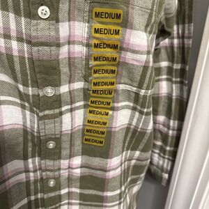Gap Flannel Boyfriend Relaxed Fit Shirt Womens Medium Green Pink Plaid NWT