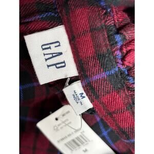Gap Flannel Puff Sleeve Mini Shirtdress Womens Size M Red Button Closure NEW