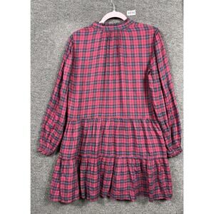 Gap Flannel Puff Sleeve Mini Shirtdress Womens Size M Red Button Closure.