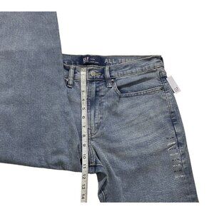 Gap Flex Denim Slim Taper Men’s Light Wash Stretch Whiskered Denim Mid-Rise (11”) Slim Tapered Leg Jeans Size 34 with an Inseam of 28”. These jeans are new with tags.