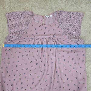 Gap Floral Blouse Women's Size Medium Mauve Romantic Keyhole Back Flowy EUC