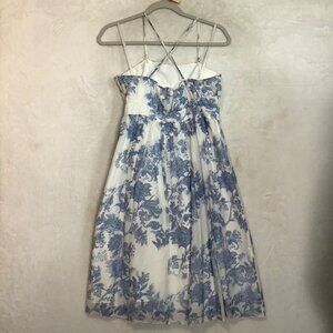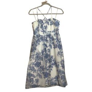 Gap Floral White Blue Midi Summer Dress Women Size 8 Silk Blend Lined Strappy