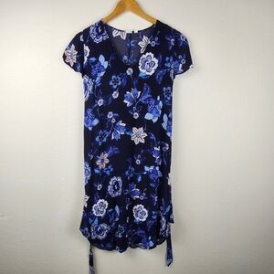 Gap Flutter Sleeve V-Neck Blue Floral Sundress Size XS
