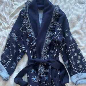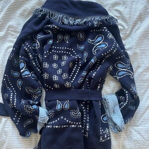 Beautiful bandana print fringe cardigan from GAP! Worn once for a photoshoot and no longer need. Size M/L, perfectly oversized fit. Comes with tie belt.