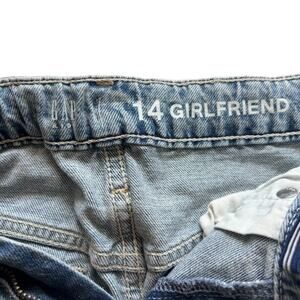 Gap Girlfriend Girls' Sz 14 Distressed Relaxed Fit Raw Hem Button Fly Jeans