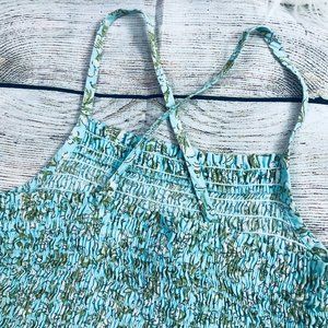 Tag is cut out. 100% cotton from GAP. Straps criss cross in the back.
