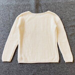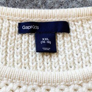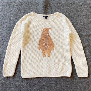 Gap Girls Open Knit Holiday Sweater 14-16 White Gold Sequin Penguin Cotton Blend