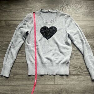 Gap cotton sweater. Gray with black textured heart at chest center. Long sleeves. Great transitional piece. Size S. Previously owned.