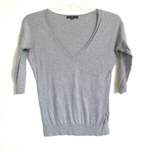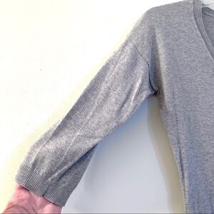 Gap Gray V-Neck Sweater 3/4 Length Sleeves Lightweight Knit Women size Medium