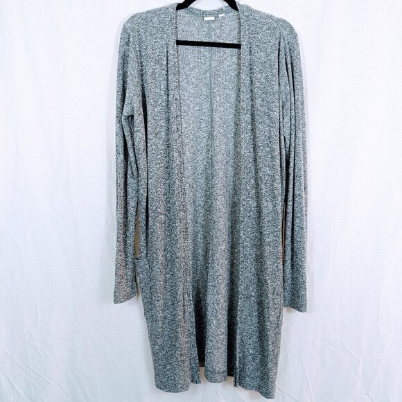 Gap Gray & White Ribbed Long Cardigan Sweater Size XS.