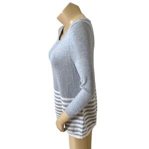 Gap Gray White Striped Scoop Neck 3/4 Sleeve Sweater Small