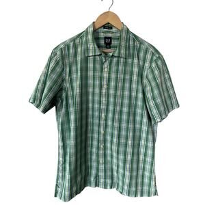 Gap Green Plaid Short Sleeve Button Down Cotton Shirt Classic Fit Medium