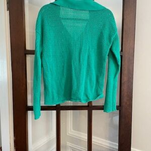 Gap Green Waffle Knit Cotton V-Neck Collared Sweater, Size Large.
