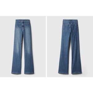 Retro, throwback, Gap, high rise, flare, 70s, disco, dance party, flattering, slimming, medium indigo wash, cool front pockets, Staying Alive, Sold Out, Hard to Find