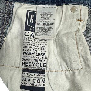 These jeans are made with 5% recycled cotton. Less waste in the world. This pair of denim is part of the Gap water-saving Washwell program.