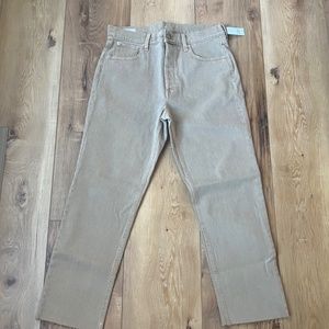 Gap NWT, never worn High Rise Cheeky Straight Jeans in Khaki tan. 90’s inspired fit straight leg fit, 11” rise, button fly, and ankle length. Inseam 27”.