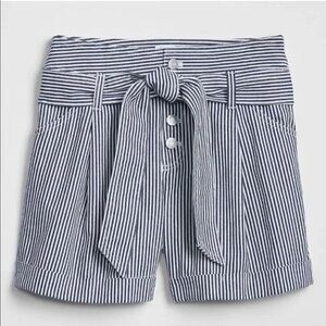 Gap High Rise Pleat Front Striped Cuffed Paperbag Shorts Button Fly Sz 8