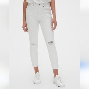 Gap High Rise True Skinny Jeans - White Distressed with Raw Hem