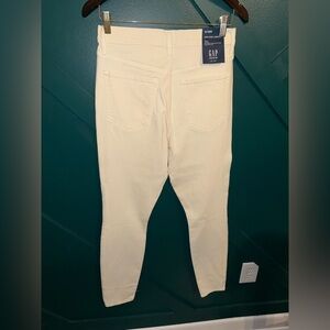 Elevate your style with these chic high-rise white jeans, featuring a fashionable button-fly. Perfect for any wardrobe.