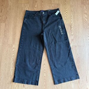Gap High Rise Wide-Leg Cropped Black Jeans 18/34R