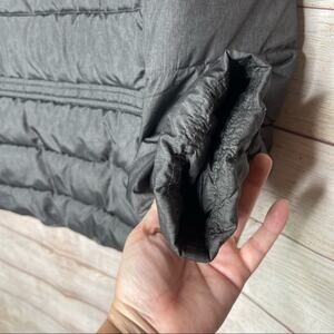 Item in Excellent Used Condition. Charcoal grey/silver, hooded, two hand pockets, faux fox fur, slightly fitted, polyester blend. Please see all photos. Measurements taken laying flat: