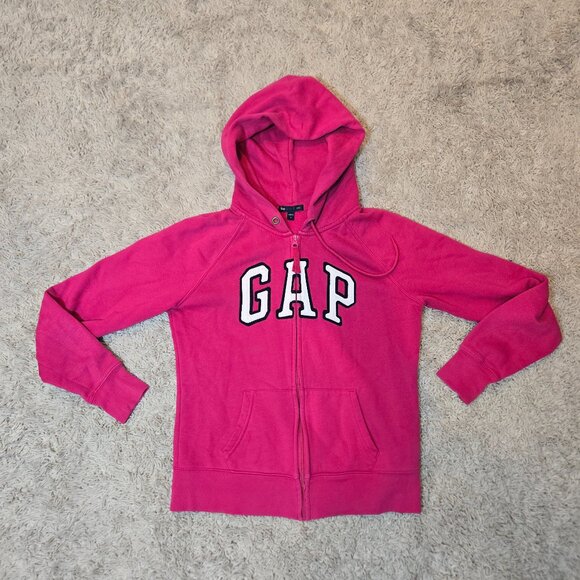 Gap Hoodie Women S Pink Full Zip Sweatshirt Fleece Spellout Cotton Blend Preppy