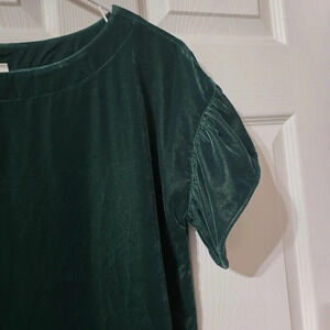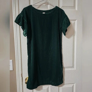 Gap Hunter Green Velvet Shift Mini Dress, Short Ruffle Sleeves, Crewneck, EUC!