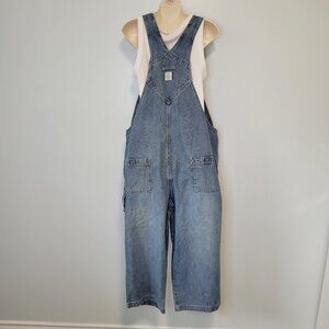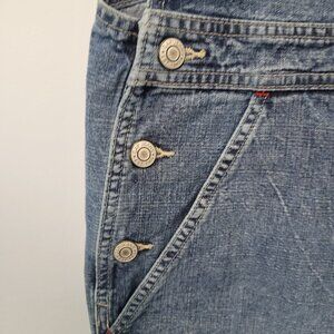 This pair of women's overalls from Gap is a must-have for any fashion-forward individual looking to add a touch of 90s style to their wardrobe. The relaxed fit and wide leg design make it a comfortable yet trendy piece. The bib portion feature two narrow pockets with Velcro and a slim centre section perfect for a carpenter pencil. The oversized front pockets, back patch pockets and side pocket with hammer loop add a touch of practicality to the outfit. A perfectly durable get-er-done outfit!