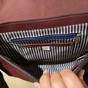 Lightly used Gap Izzy Burgundy Crossbody with adjustable straps and gold hardware. Bag is in great condition with navy and white striped interior and white striped pattern on adjustable strap.