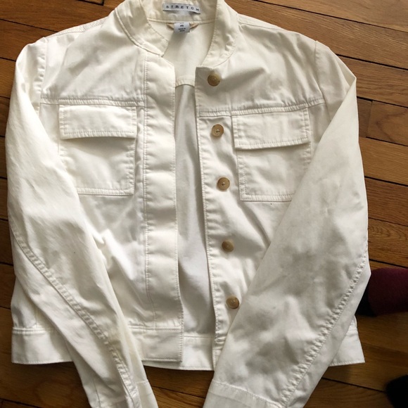 Short white jacket with tan buttons
