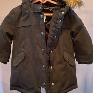 Like NEW Gap toddler winter jacket. Black with faux fur hood. detachable! Size 18-24 months. Water repellent. Easy to clean! Warm!
