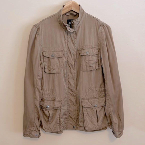 Gap lightweight jacket in tan. Internal drawstring for a more flattering fit.