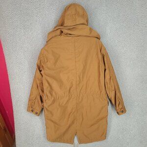 Gap Jacket Mens Medium Military Fishtail Parka Removable Hood Liner Brown Canvas