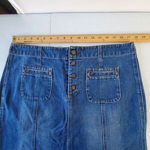 Gap Jeans Denim Maxi Skirt Size 14. Light distressing and fading with an exposed button front closure and front pockets in a midi or maxi length.