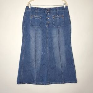 Gap Jeans Denim Maxi Skirt Size 14 Cotton Button Front Modest Office Boho Y2K