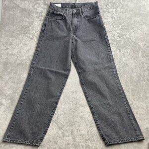 These Gap Jeans for men in a size 28x28” feature a faded black baggy fit denim design, perfect for a Y2K skater grunge style. Made from cotton denim with a high rise and straight leg fit, these jeans have a zip closure, five-pocket design, and come in a solid black color.
