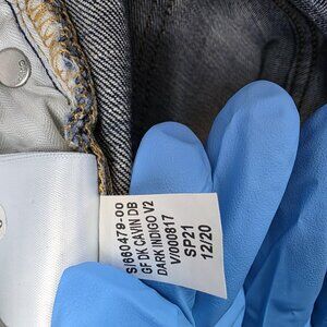 Style/Model information on inner tag: S160479-00, GF DK CAYIN DB, DARK INDIGO V2, season code SP21 (12/20).