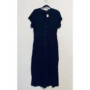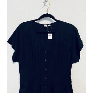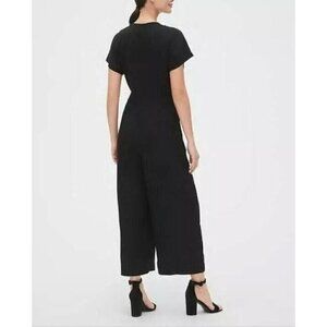 Gap Jumpsuit Womens Medium Button Up Pleated Wide Leg Cropped Black Boho