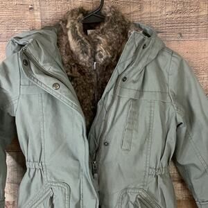 Gap Kids 3 in 1 Hooded Parka Utility Jacket Faux Fur Vest Army Green Size Small