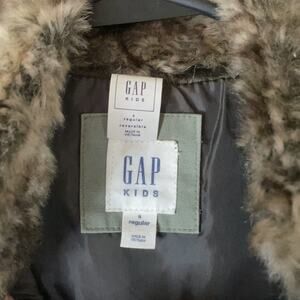 Gap Kids 3 in 1 Hooded Parka. Size small 6-7. Color ~ Olive green. Hood has buttons for a fur lining but it is missing. Quilted inside. Faux fur vest. Can be worn together or separate. Excellent condition.