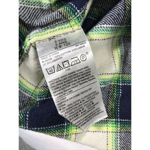 Gap Kids Boys Blue Yellow White Green Plaid Cotton Button Down Shirt 5 Years